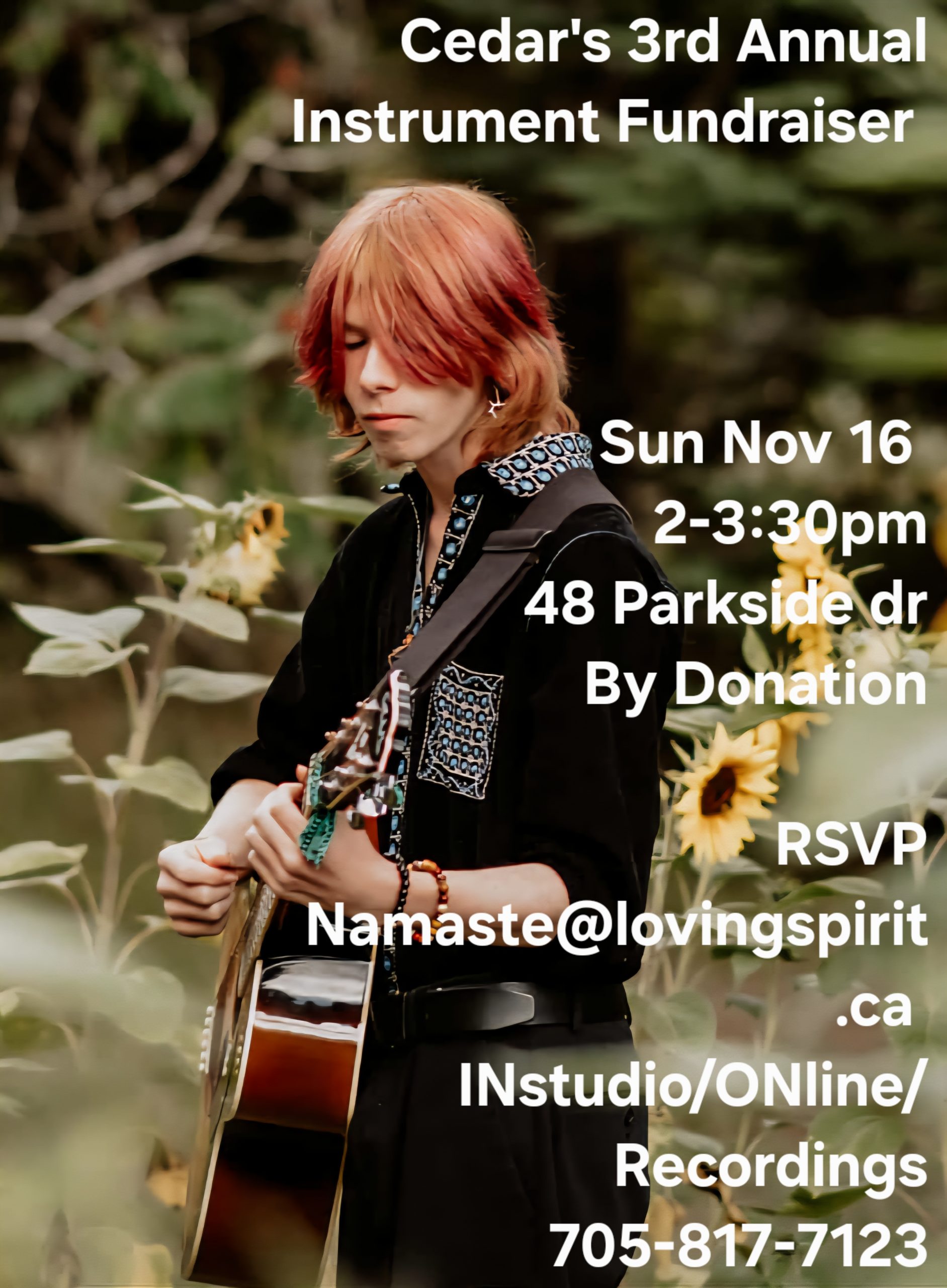 Cedar’s Instrument Fundraising Concert~INstudio/ONline/Recordings Sunday November 16th 2-4pm EST